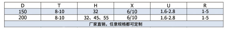 注/Note:单位毫米(mm),其他规格可按客户要求定做